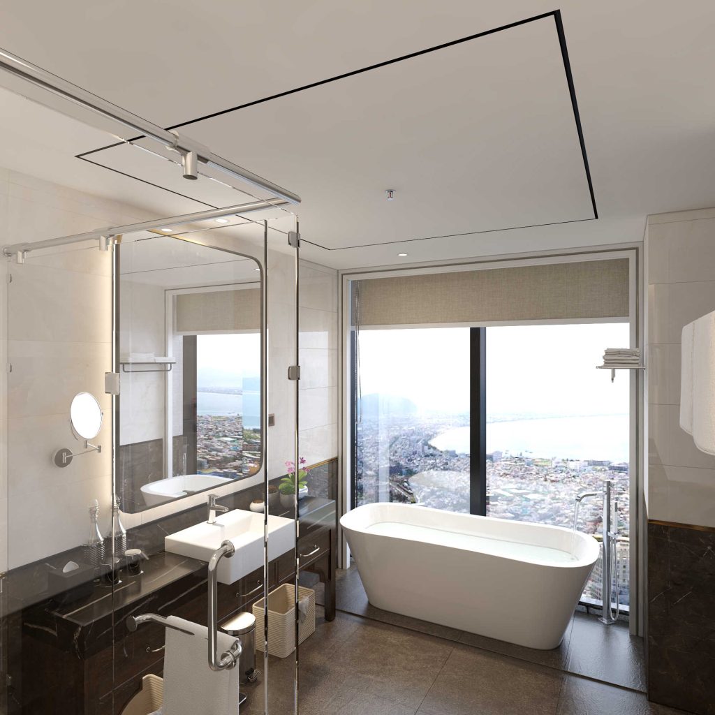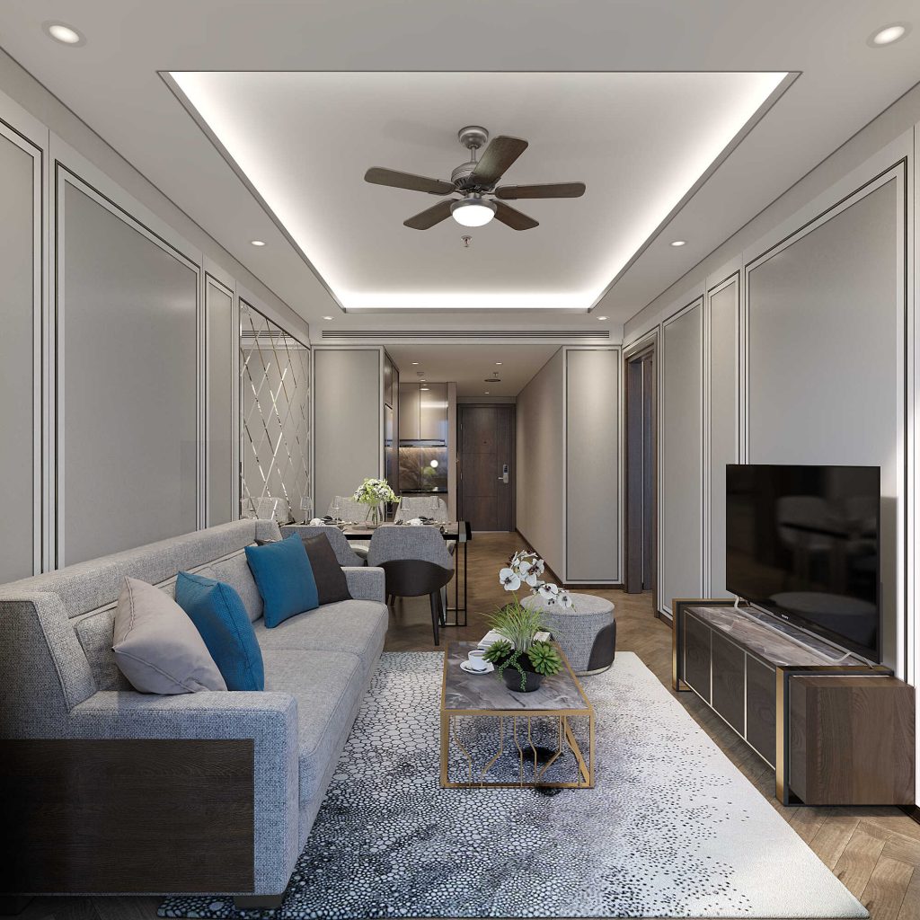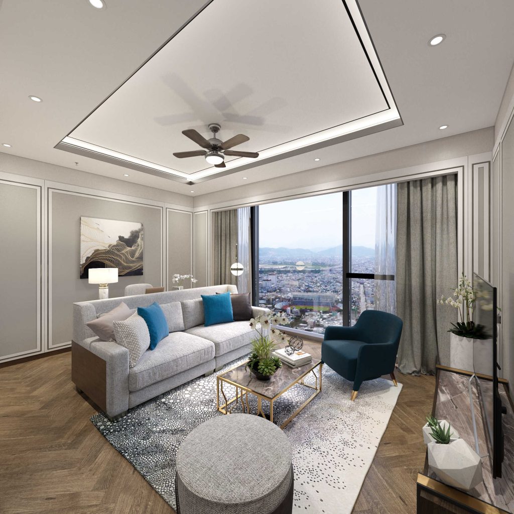 The Privé được kiến tạo với thiết kế không gian mở, mang đến tầm nhìn rộng mở hướng ra sông xanh thơ mộng hoặc khung cảnh thành phố rực rỡ ánh đèn khi đêm về, hoàn toàn không bị che khuất bởi bất kỳ công trình nào. Đây chính là điểm nhấn đắt giá, góp phần khẳng định vị thế và đẳng cấp khác biệt của dự án. Bên cạnh đó, sự kết hợp tinh tế giữa gam màu trắng – xám sang trọng và các đường nét kiến trúc vuông vức, dứt khoát tạo nên một tổng thể kiến trúc hiện đại, hài hòa và đậm tính nghệ thuật.