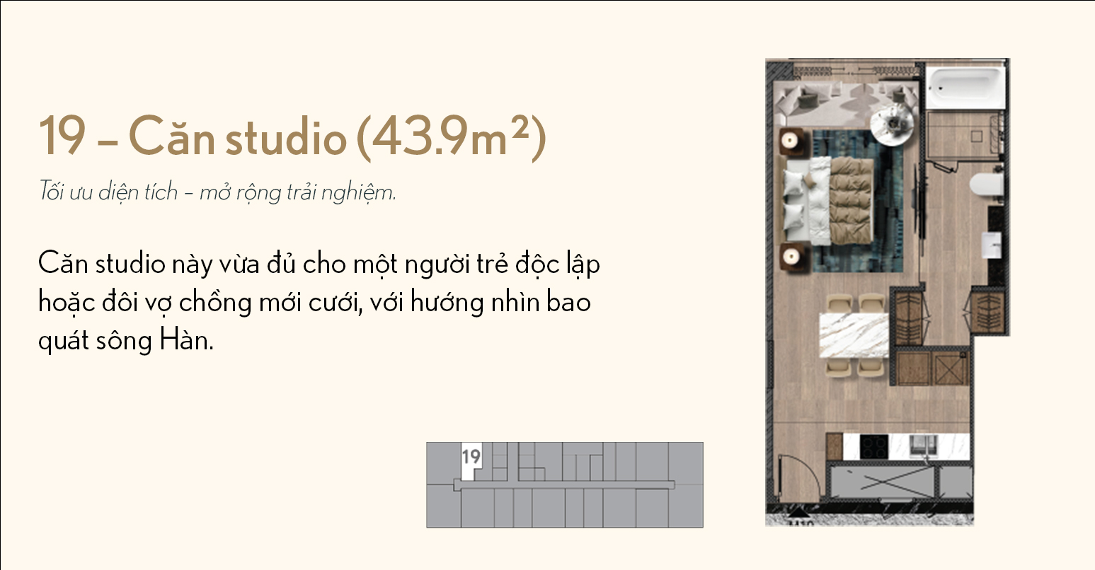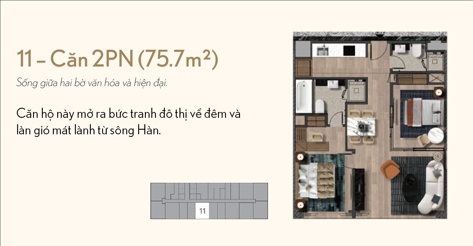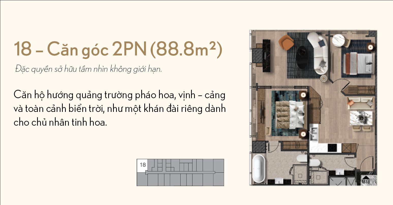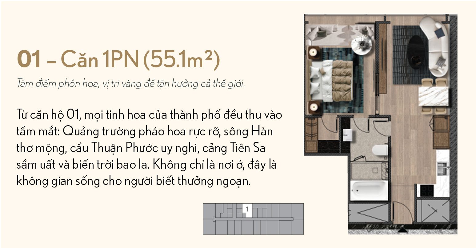 M Landmark Residences mang đến không gian sống đẳng cấp và tinh tế, được bố trí hợp lý, tối ưu hóa ánh sáng tự nhiên và tầm nhìn đắt giá hướng sông Hàn. Các căn hộ tại đây được thiết kế với nhiều loại diện tích linh hoạt, đáp ứng đa dạng nhu cầu của cư dân và nhà đầu tư.