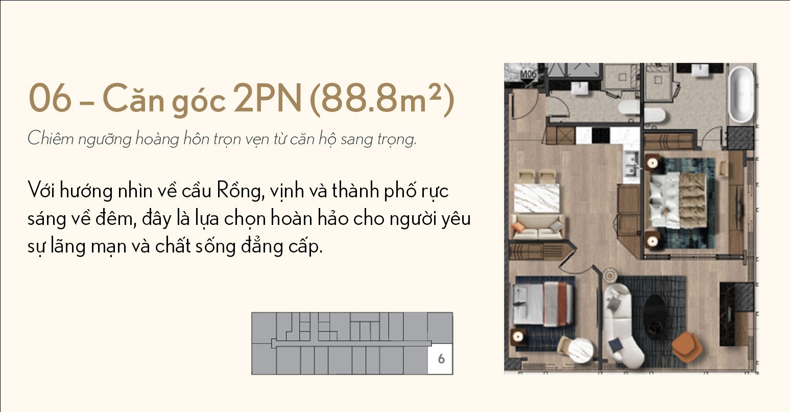 Từ ban công căn hộ M Landmark Residences, cư dân có thể thu trọn tầm mắt 6 cây cầu biểu tượng bắc qua sông Hàn: cầu Rồng, cầu Sông Hàn, Trần Thị Lý, Nguyễn Văn Trỗi, Thuận Phước và Tiên Sơn. Mỗi cây cầu là một dấu ấn, một nhịp thở gắn liền với sự phát triển phồn thịnh của Đà Nẵng, tạo nên không gian sống giàu cảm hứng và đầy tự hào.