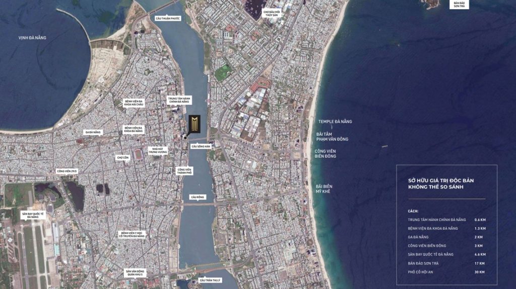 Từ M Landmark Residences, chỉ mất 10 phút để kết nối đến sân bay quốc tế Đà Nẵng, dễ dàng tiếp cận những bãi biển nổi tiếng như Mỹ Khê – được mệnh danh là “bãi biển quyến rũ nhất hành tinh”. Đồng thời, dự án cũng là cửa ngõ thuận tiện dẫn lối tới hệ sinh thái di sản miền Trung: phố cổ Hội An, thánh địa Mỹ Sơn, cố đô Huế – những điểm đến văn hóa và lịch sử nổi bật, mang đậm hồn Việt.