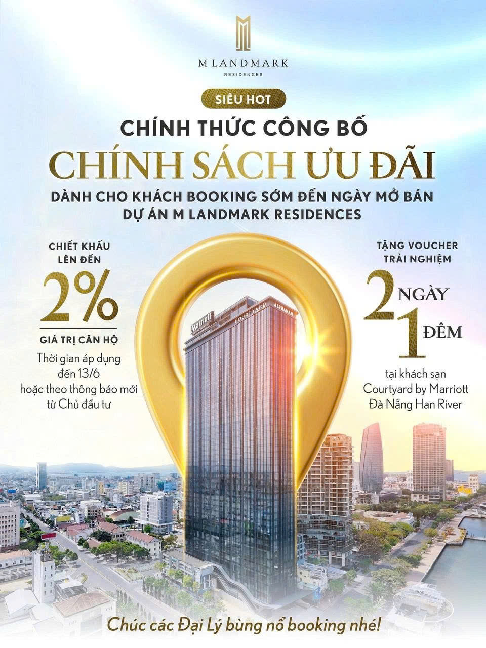 Siêu dự án tổ hợp khách sạn Condotel M Landmark Residences tọa lạc tại “Kim Cương” Đà Nẵng, đối diện ngay với con đường “triệu đô” Bạch Đằng, con đường du lịch về đêm nổi tiếng nhất Đà Nẵng. Ngay cạnh cầu quay sông Hàn, biểu tượng của thành phố đáng sống nhất cả nước.