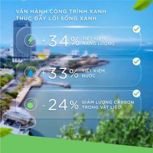 Tiết kiệm 33.79% năng lượng, 32.67% nước, 24% carbon trong vật liệu – con số không phải công trình nào cũng chạm tới.