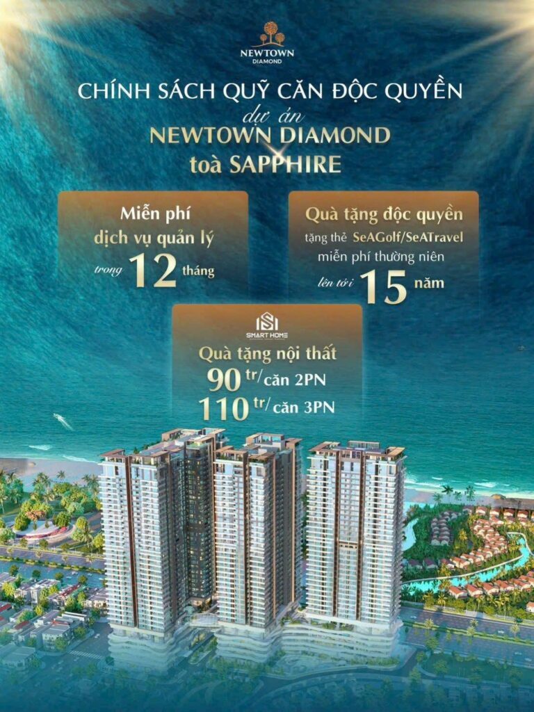 Newtown Diamond Đà Nẵng là một dự án căn hộ cao cấp đáng chú ý tại thành phố biển xinh đẹp Đà Nẵng. Với vị trí đắc địa ven biển, thiết kế sang trọng theo phong cách Ý, hệ thống tiện ích đẳng cấp 5 sao và pháp lý sở hữu lâu dài, dự án hứa hẹn mang đến không gian sống lý tưởng cho cư dân cũng như cơ hội đầu tư sinh lời hấp dẫn.